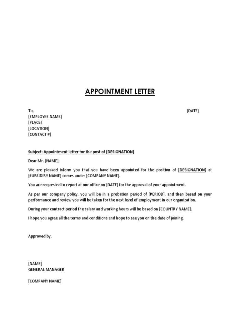 There are some points that should be covered in an ideal format of an appointment letter. Adobe acrobat (.pdf) this document has been certified by a professional. What the employee is expected to do.