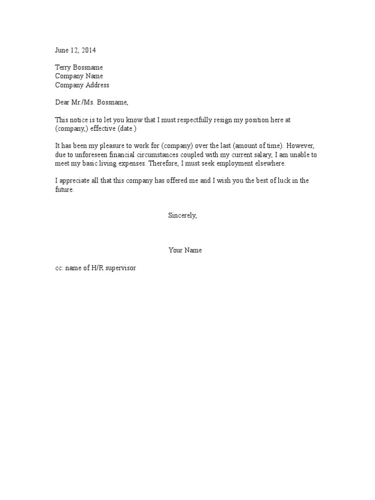 Resignation letter due to low salary. It has been a pleasure to work with your company, and i thank you. Sample 1 resignation letter for unsatisfied salary “[below briefly describe on sample resign letter format due to poor salary. Sample 4 “ dear [employer], i am writing to share that i will be resigning as [your position] effective [last date].
